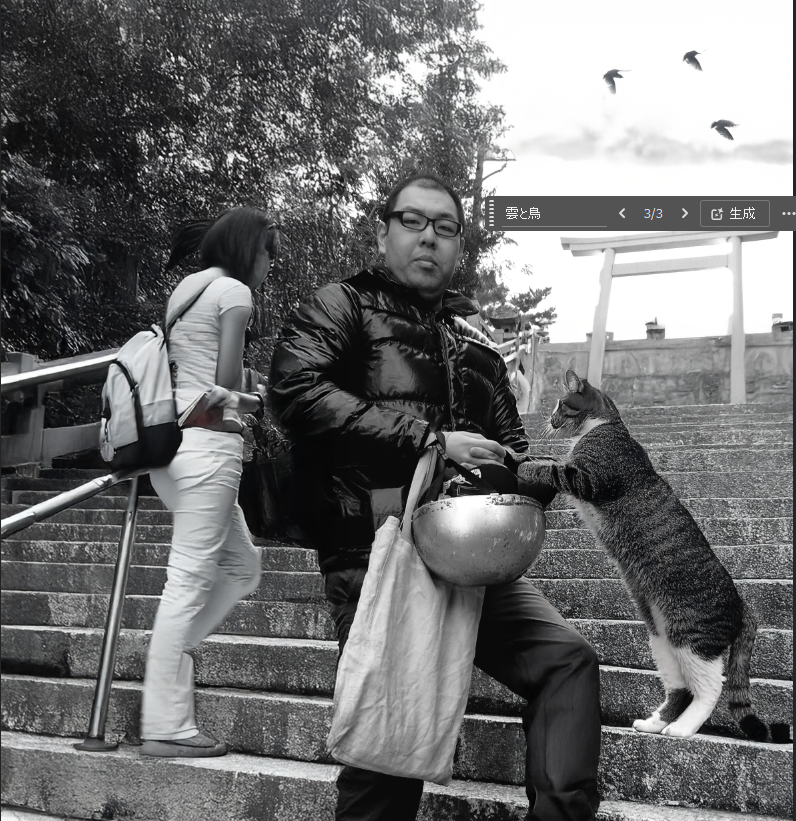 ホワイトバック等の画像を素材ではなくメインで使う場合に背景をAIで出力して使用する