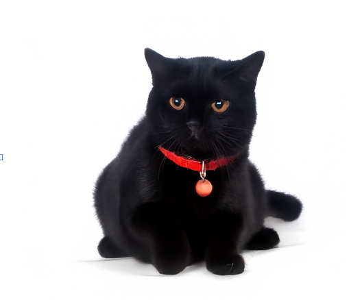 赤い首輪をつけた黒猫が座っている写真のような画像