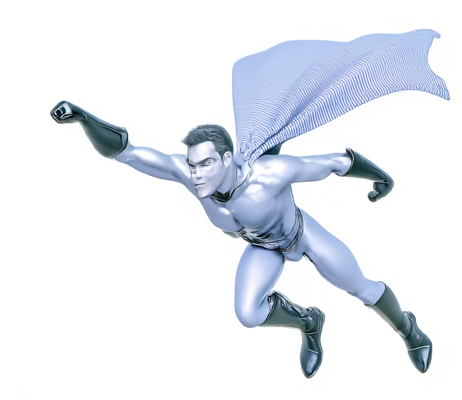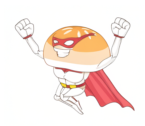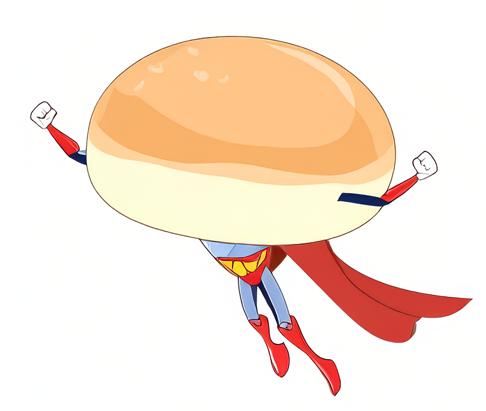 アンパンに手足が生えていてマントを付けて空を飛ぶスーパーマンのように困っている人を助けるヒーロー